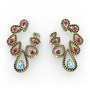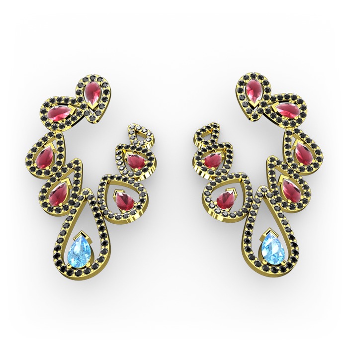 Akuamarin, kök yakut ve siyah zirkon 8 ayar altın küpe