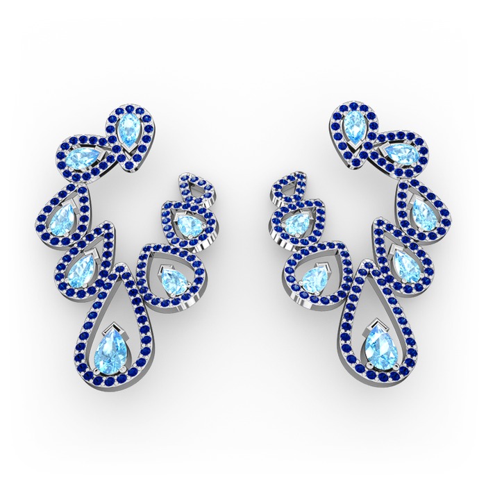 Akuamarin ve lab safir 18 ayar beyaz altın küpe