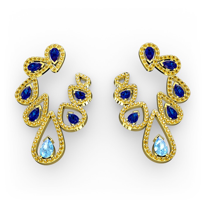 Akuamarin, lab safir ve sitrin 925 ayar altın kaplama gümüş küpe