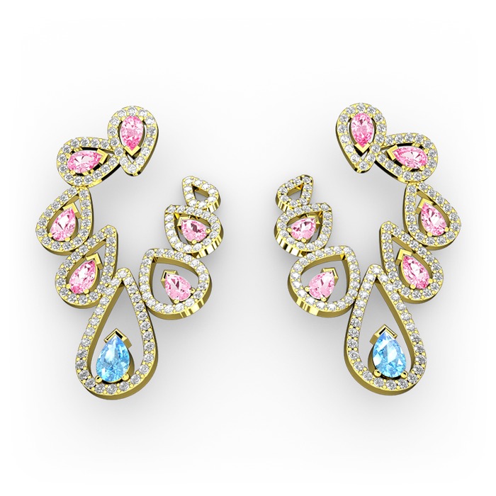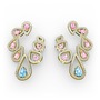Akuamarin, pembe kuvars ve pırlanta 925 ayar altın kaplama gümüş küpe (2.882 karat)