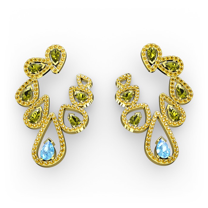 Akuamarin, peridot ve sitrin 925 ayar altın kaplama gümüş küpe