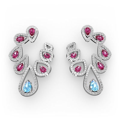 Akuamarin, rodolit garnet ve pırlanta 18 ayar beyaz altın küpe (2.882 karat)