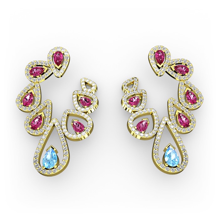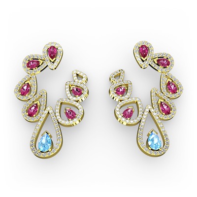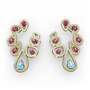 Akuamarin, rodolit garnet ve pırlanta 925 ayar altın kaplama gümüş küpe (2.882 karat)