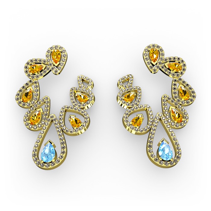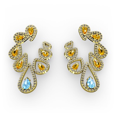 Akuamarin, sitrin ve dumanlı kuvars 8 ayar altın küpe