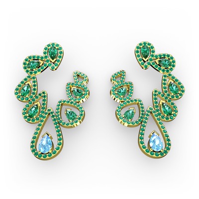 Akuamarin ve yeşil kuvars 925 ayar altın kaplama gümüş küpe