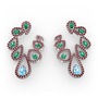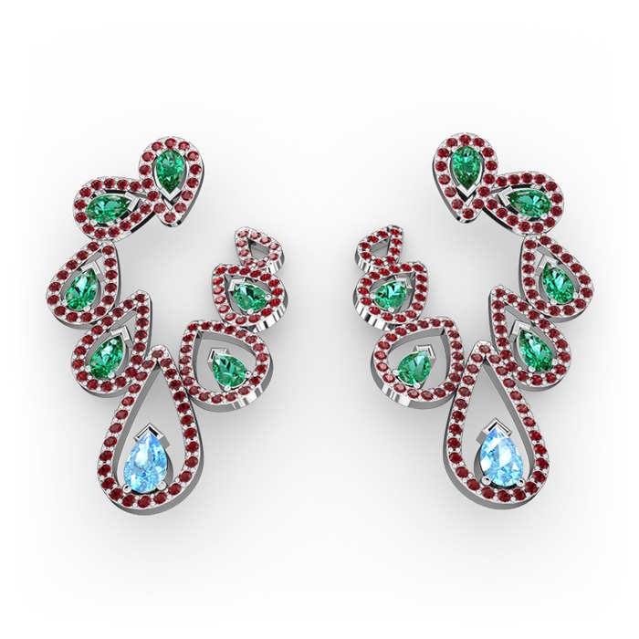 Akuamarin, yeşil kuvars ve garnet 925 ayar gümüş küpe