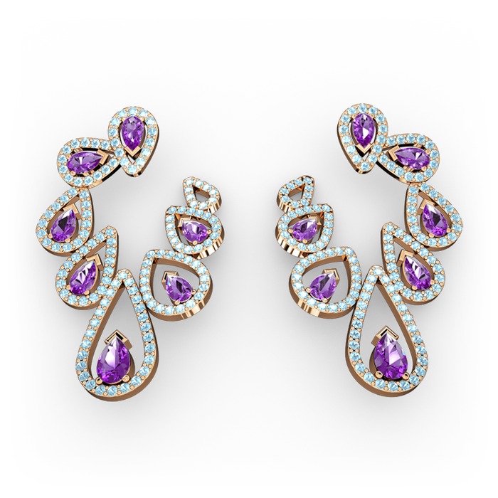Ametist ve akuamarin 14 ayar rose altın küpe