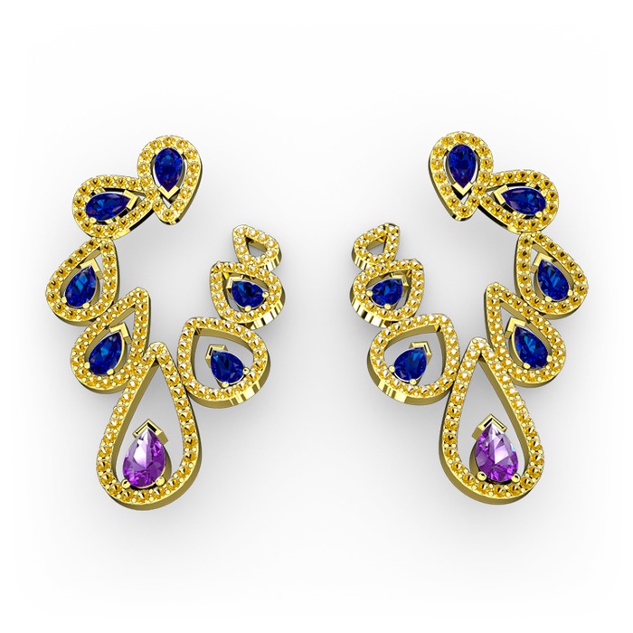 Ametist, lab safir ve sitrin 14 ayar altın küpe