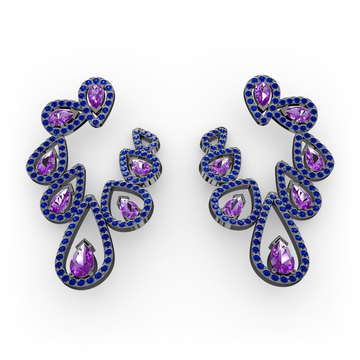 Ametist ve lab safir 925 ayar siyah rodyum kaplama gümüş küpe
