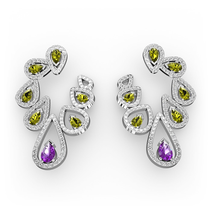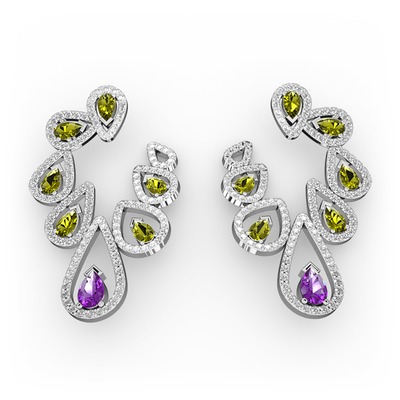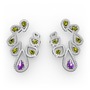 Ametist, peridot ve swarovski 8 ayar beyaz altın küpe