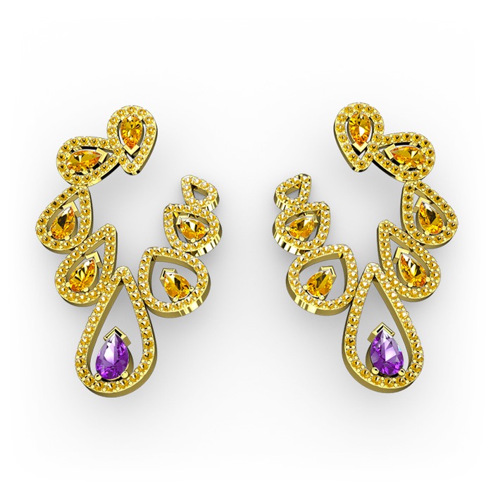 Ametist ve sitrin 18 ayar altın küpe