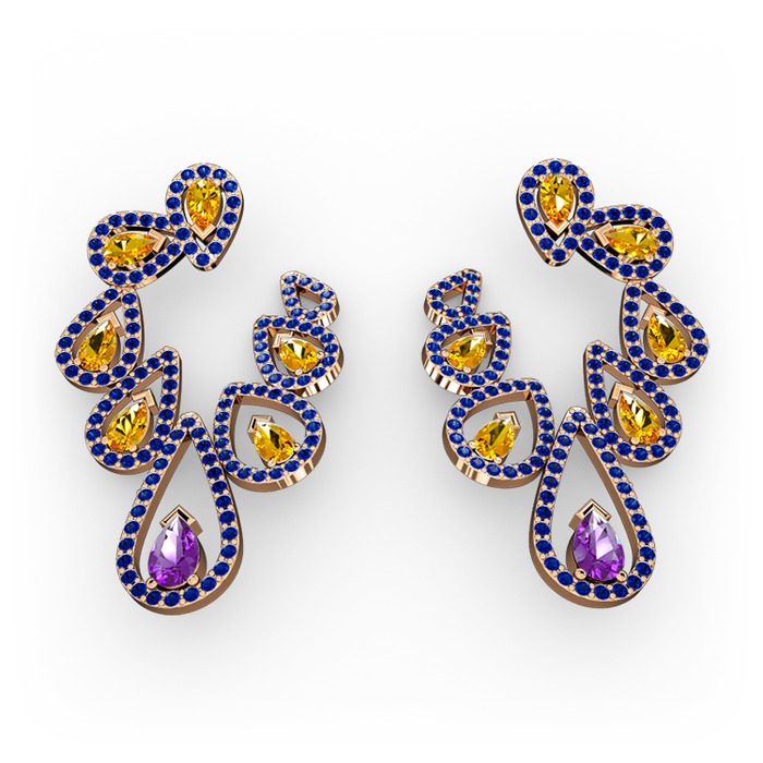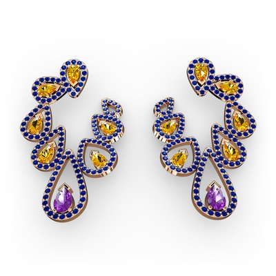 Ametist, sitrin ve lab safir 8 ayar rose altın küpe