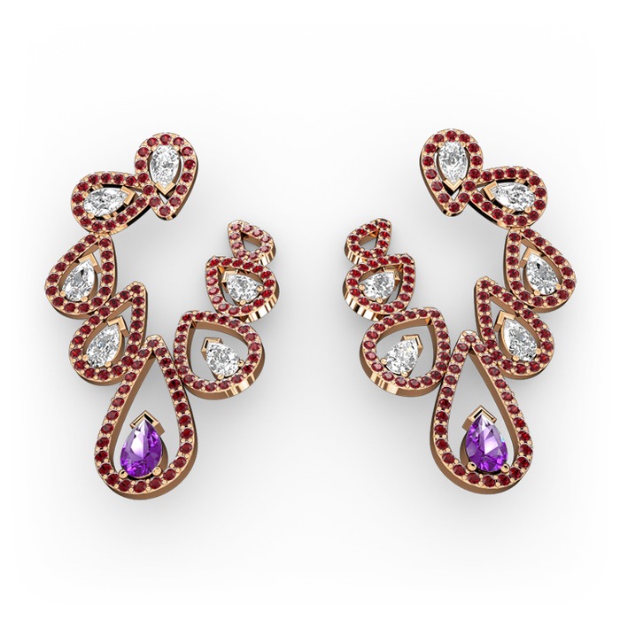 Ametist, swarovski ve garnet 8 ayar rose altın küpe