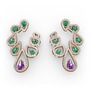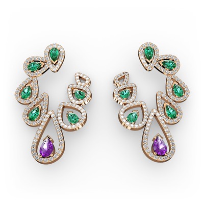 Ametist, yeşil kuvars ve swarovski 925 ayar rose altın kaplama gümüş küpe