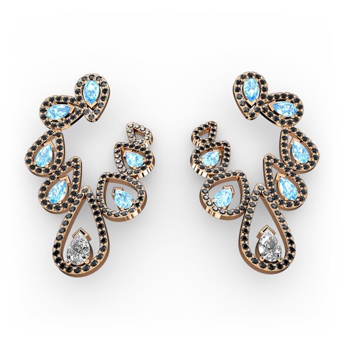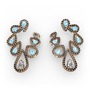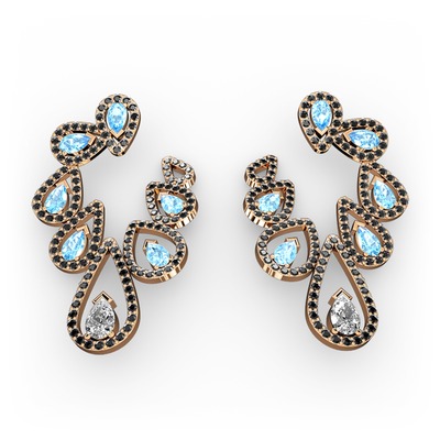 Beyaz zirkon, akuamarin ve siyah zirkon 8 ayar rose altın küpe