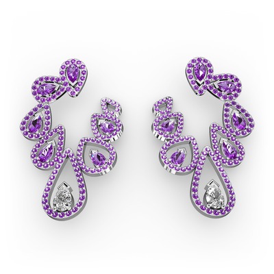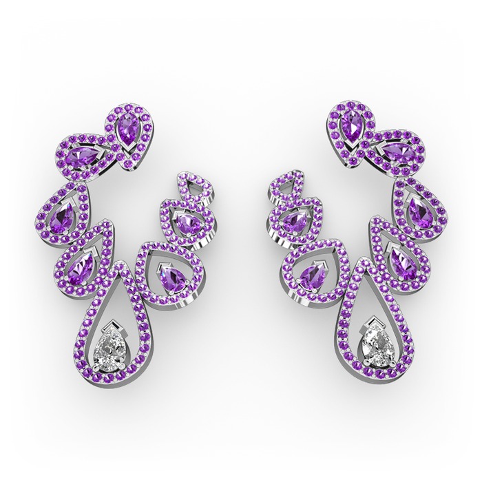 Beyaz zirkon ve ametist 8 ayar beyaz altın küpe