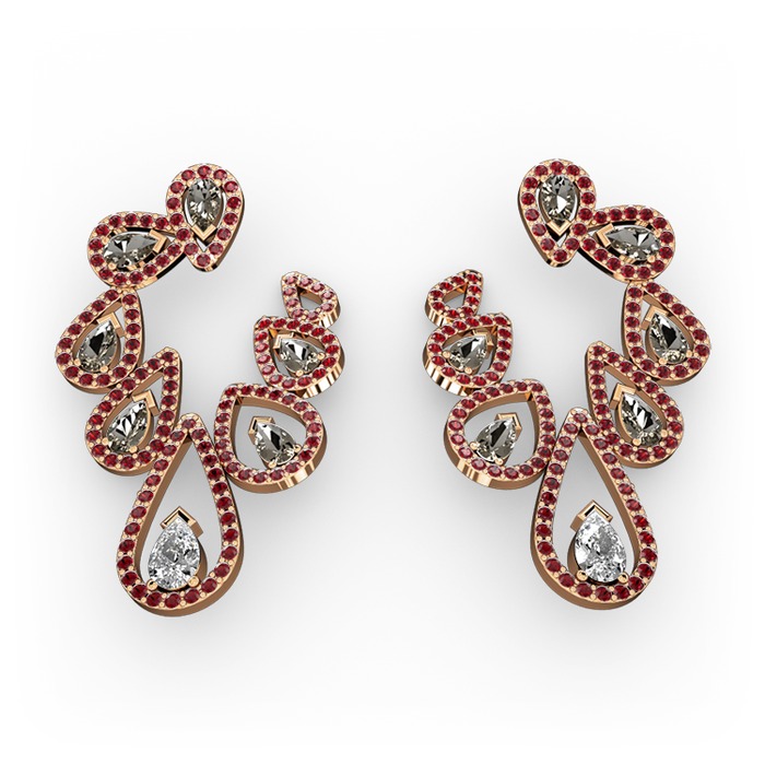 Beyaz zirkon, dumanlı kuvars ve garnet 18 ayar rose altın küpe