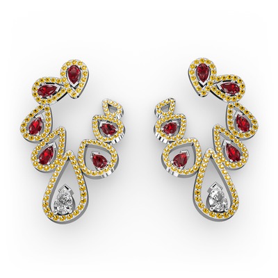 Beyaz zirkon, garnet ve sitrin 925 ayar gümüş küpe