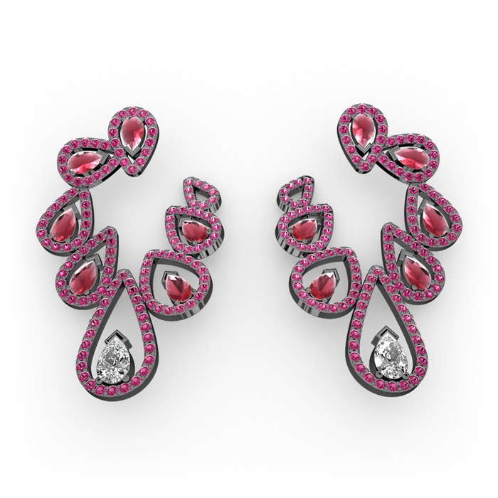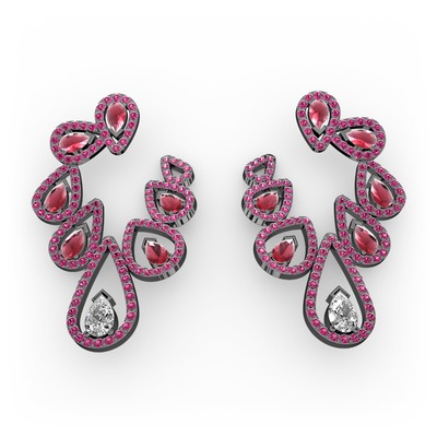 Beyaz zirkon, kök yakut ve rodolit garnet 925 ayar siyah rodyum kaplama gümüş küpe