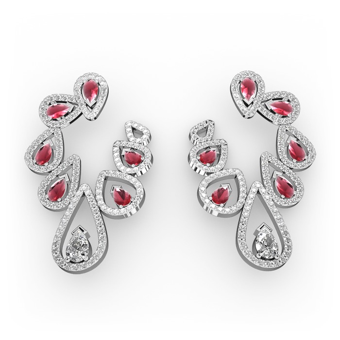 Beyaz zirkon, kök yakut ve swarovski 18 ayar beyaz altın küpe