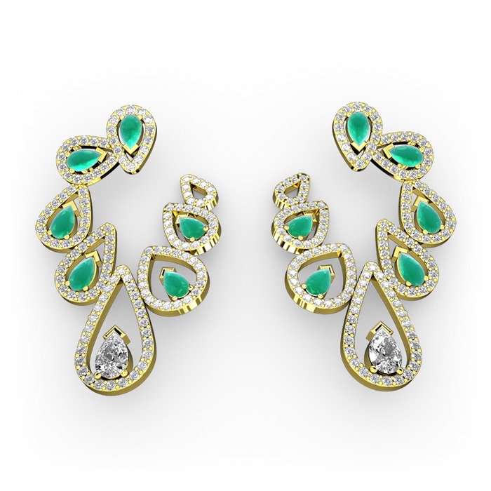 Beyaz zirkon, kök zümrüt ve swarovski 14 ayar altın küpe