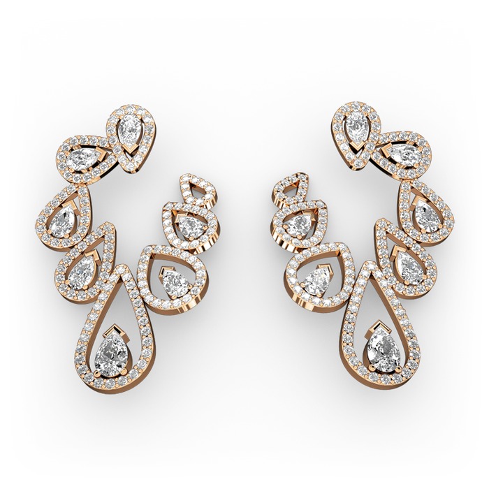 Beyaz zirkon ve pırlanta 8 ayar rose altın küpe (2.882 karat)