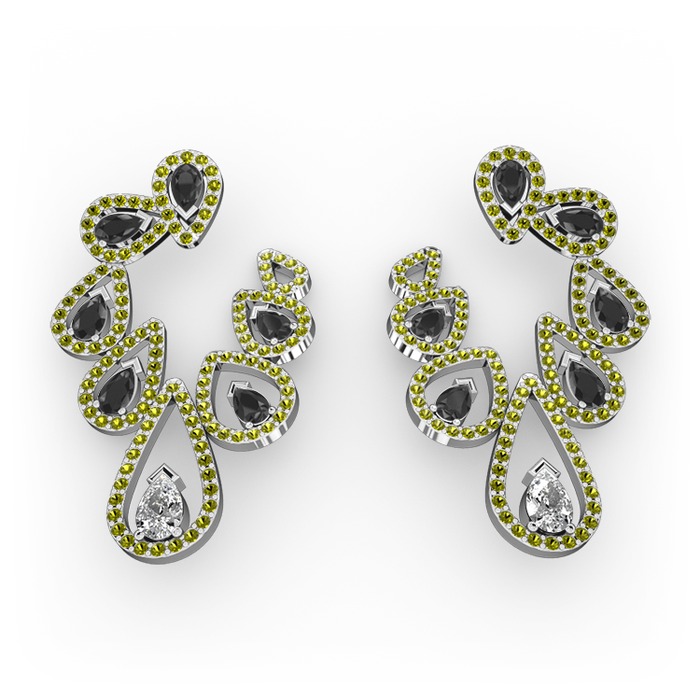 Beyaz zirkon, siyah zirkon ve peridot 925 ayar gümüş küpe