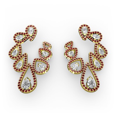 Beyaz zirkon, swarovski ve garnet 8 ayar altın küpe
