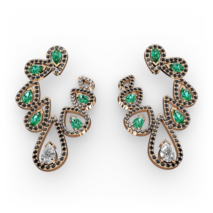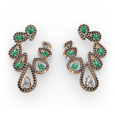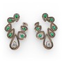 Beyaz zirkon, yeşil kuvars ve siyah zirkon 18 ayar rose altın küpe