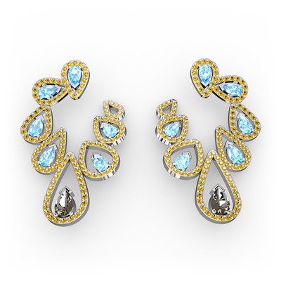 Dumanlı kuvars, akuamarin ve sitrin 14 ayar beyaz altın küpe