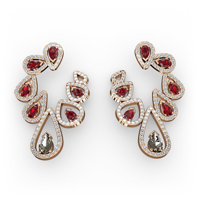 Dumanlı kuvars, garnet ve pırlanta 18 ayar rose altın küpe (2.882 karat)