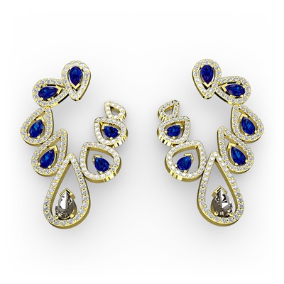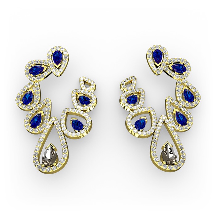 Dumanlı kuvars, lab safir ve pırlanta 8 ayar altın küpe (2.882 karat)