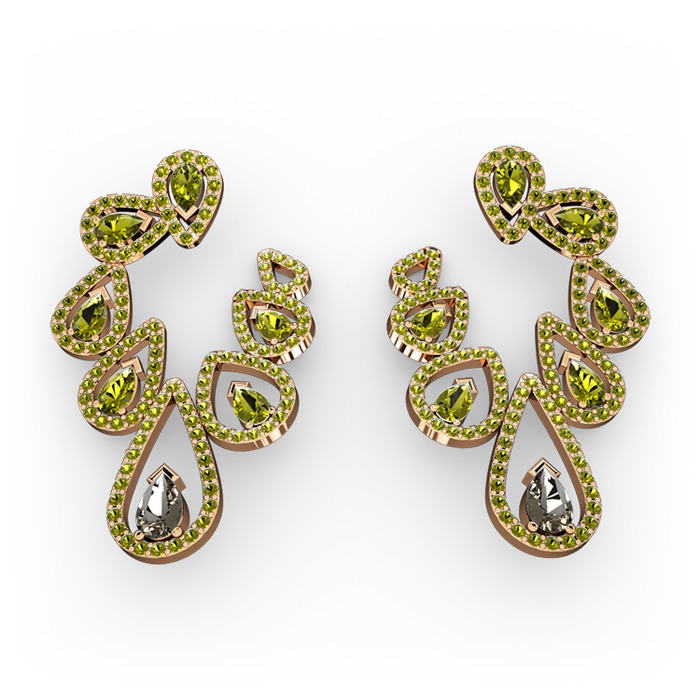 Dumanlı kuvars ve peridot 8 ayar rose altın küpe