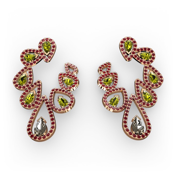 Dumanlı kuvars, peridot ve garnet 8 ayar rose altın küpe