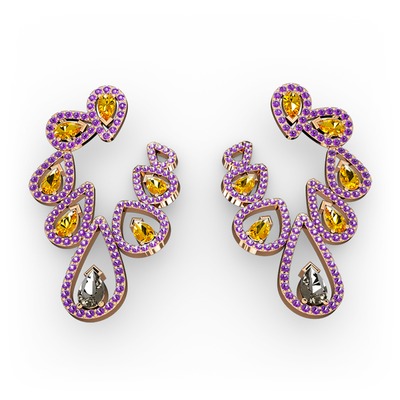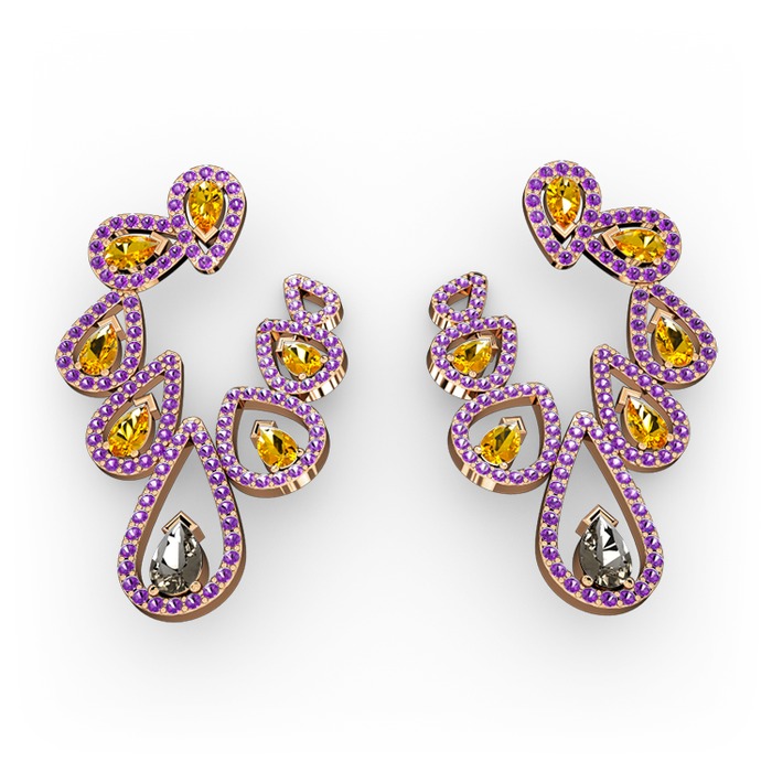Dumanlı kuvars, sitrin ve ametist 925 ayar rose altın kaplama gümüş küpe