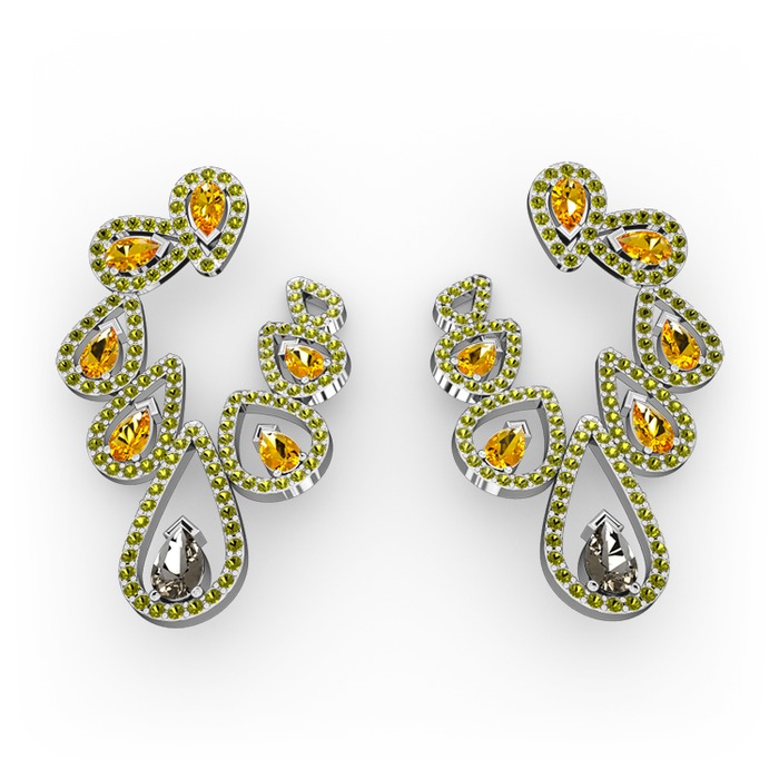 Dumanlı kuvars, sitrin ve peridot 925 ayar gümüş küpe