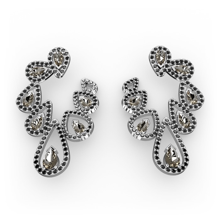 Dumanlı kuvars ve siyah zirkon 8 ayar beyaz altın küpe
