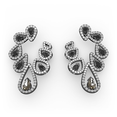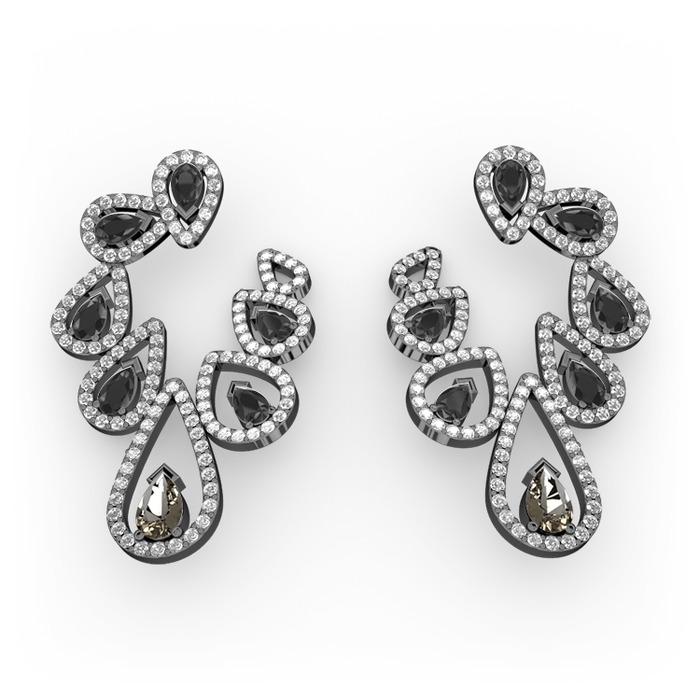 Dumanlı kuvars, siyah zirkon ve beyaz zirkon 925 ayar siyah rodyum kaplama gümüş küpe