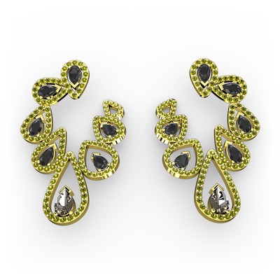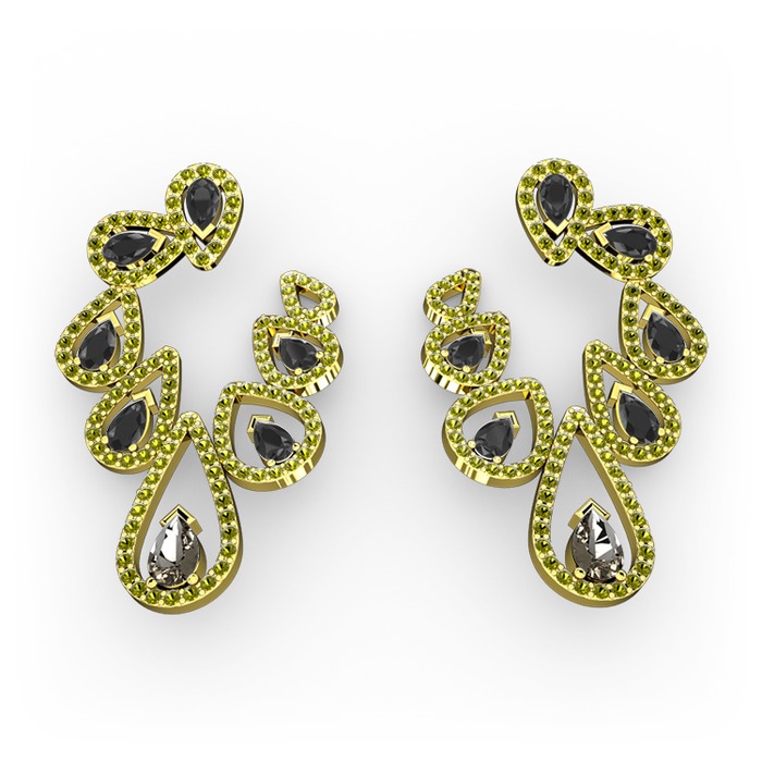 Dumanlı kuvars, siyah zirkon ve peridot 925 ayar altın kaplama gümüş küpe