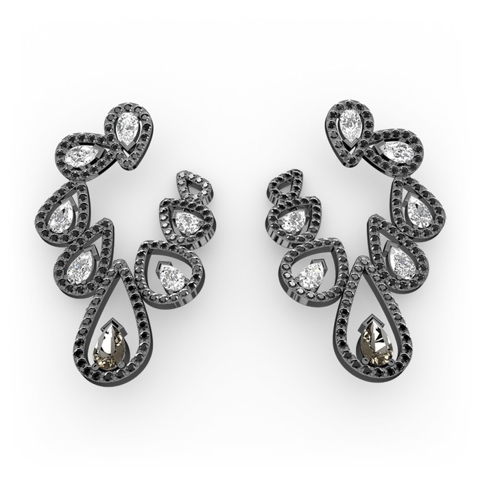 Dumanlı kuvars, swarovski ve siyah zirkon 925 ayar siyah rodyum kaplama gümüş küpe