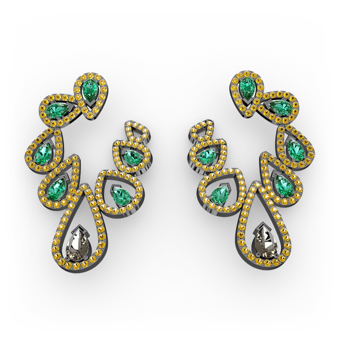 Dumanlı kuvars, yeşil kuvars ve sitrin 925 ayar siyah rodyum kaplama gümüş küpe