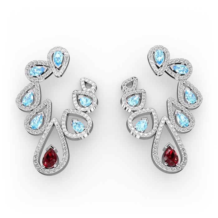Garnet, akuamarin ve beyaz zirkon 925 ayar gümüş küpe