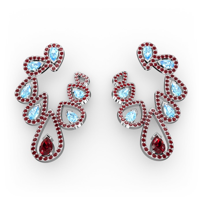 Garnet ve akuamarin 925 ayar gümüş küpe
