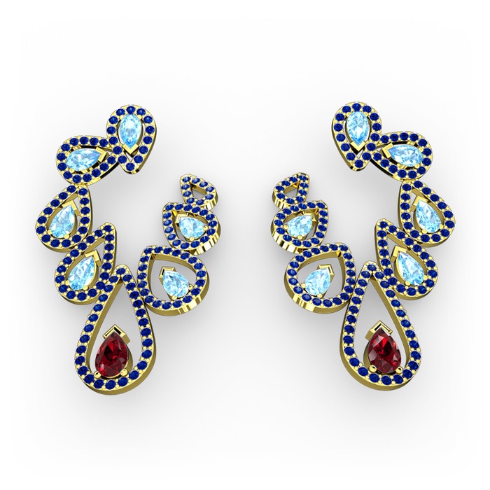 Garnet, akuamarin ve lab safir 925 ayar altın kaplama gümüş küpe