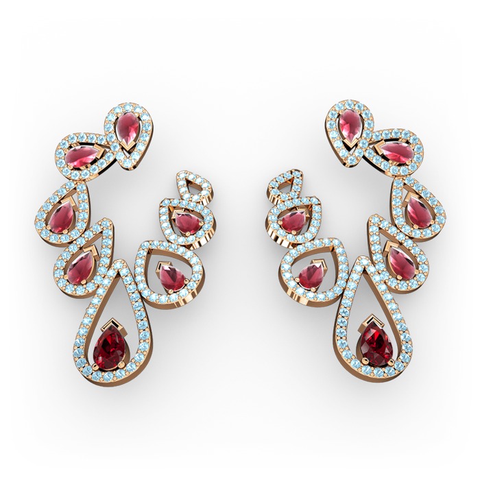 Garnet, kök yakut ve akuamarin 18 ayar rose altın küpe