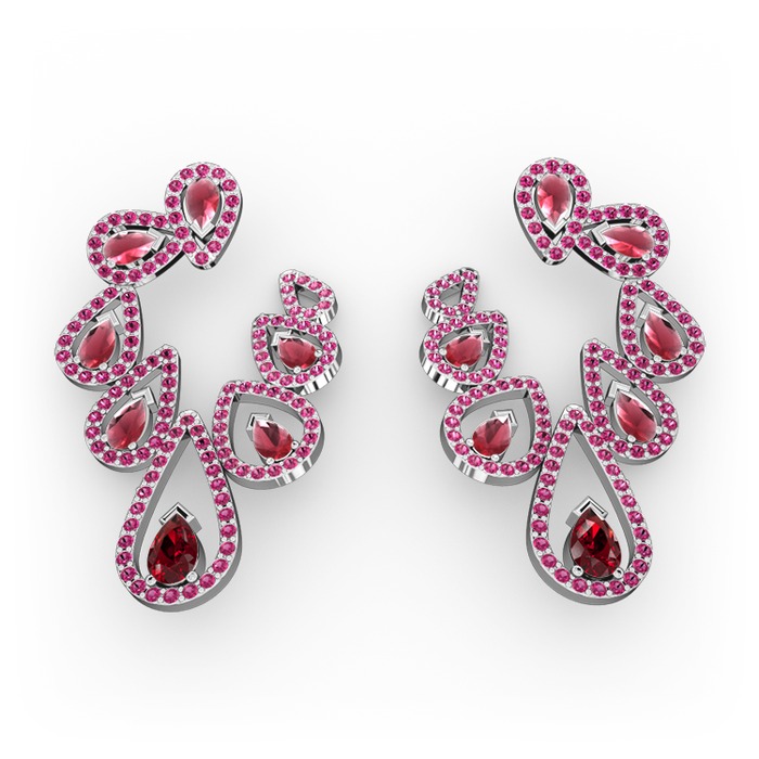 Garnet, kök yakut ve rodolit garnet 8 ayar beyaz altın küpe