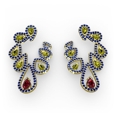 Garnet, peridot ve lab safir 18 ayar altın küpe
