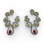 Garnet, peridot ve siyah zirkon 8 ayar beyaz altın küpe