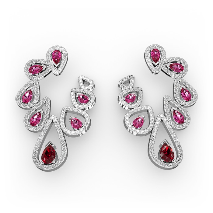 Garnet, rodolit garnet ve beyaz zirkon 925 ayar gümüş küpe