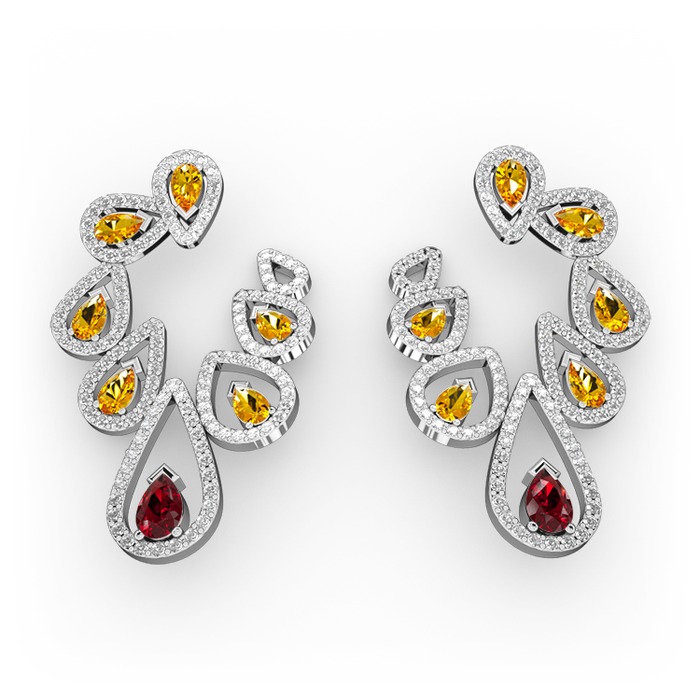 Garnet, sitrin ve pırlanta 925 ayar gümüş küpe (2.882 karat)
